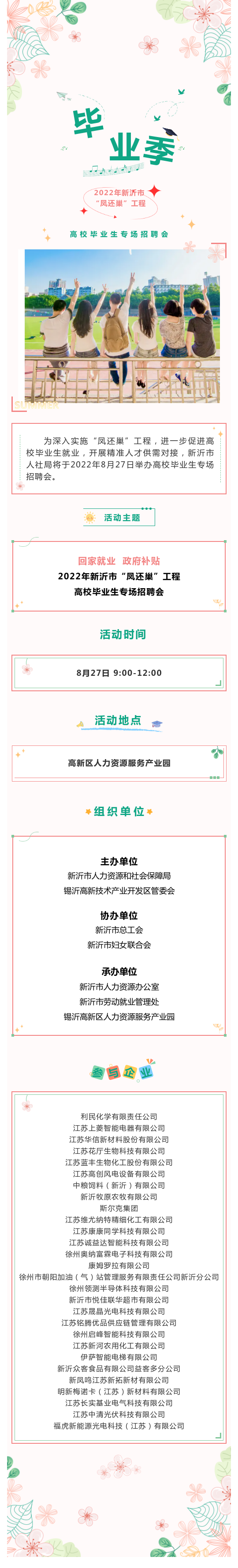 明天上午我在這里等你!回家就業(yè) 政府補貼—2022年新沂市“鳳還巢”工程——高校畢業(yè)生專場招聘會返回公告列表 >>