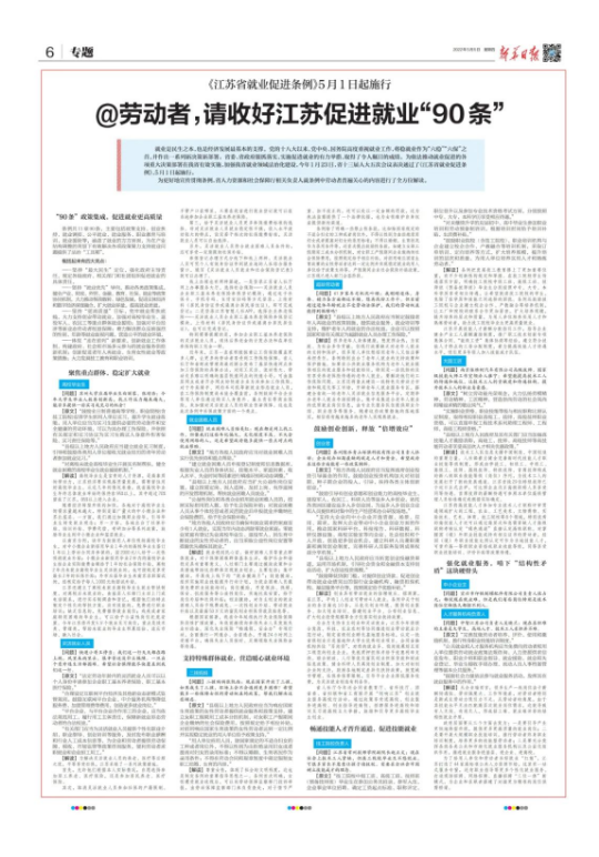 就業是民生之本,也是經濟發展最基本的支撐。黨的十八大以來,黨中央、國務院高度重視就業工作,將穩就業作為“六穩”“六保”之首,并作出一系列新決策新部署。省委、省政府狠抓落實,實施促進就業的有力舉措,取得了令人矚目的成績。為依法推動就業促進的各項重大決策部署在我省有效實施,加強我省就業領域法治化建設,今年1月23日,省十三屆人大五次會議表決通過了《江蘇省就業促進條例》,5月1日起施行。